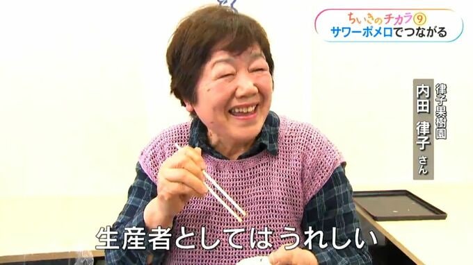 (律子果樹園 内田律子さん)「おいしい、生産者としてはうれしい。こんなにうまく使ってくれて」