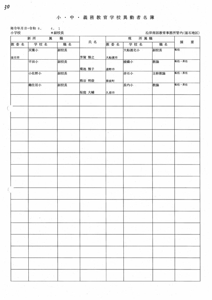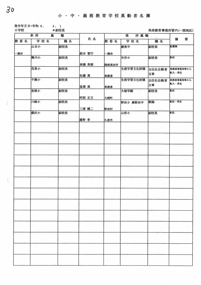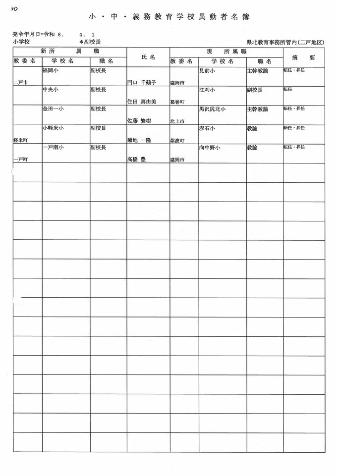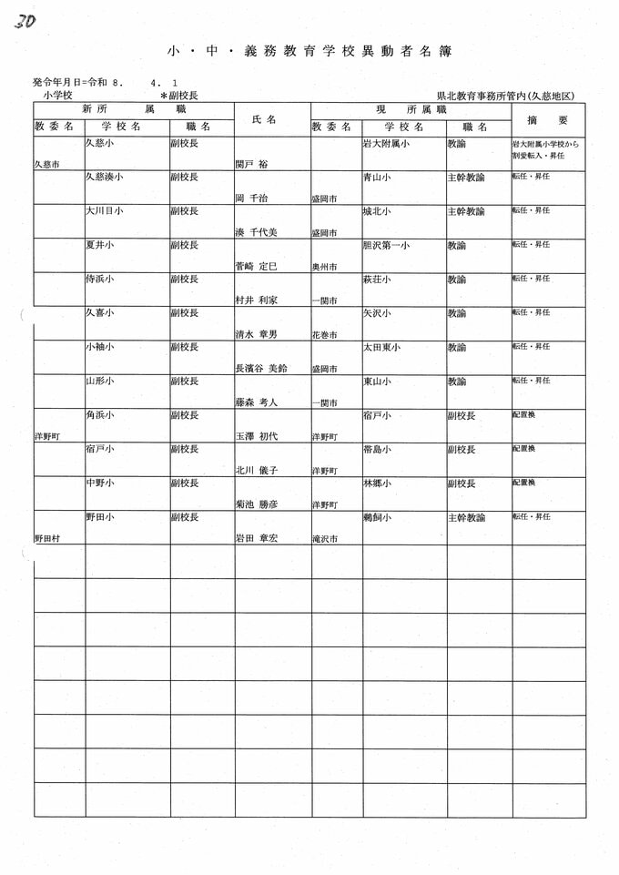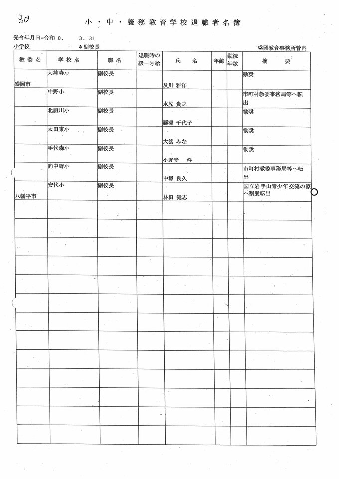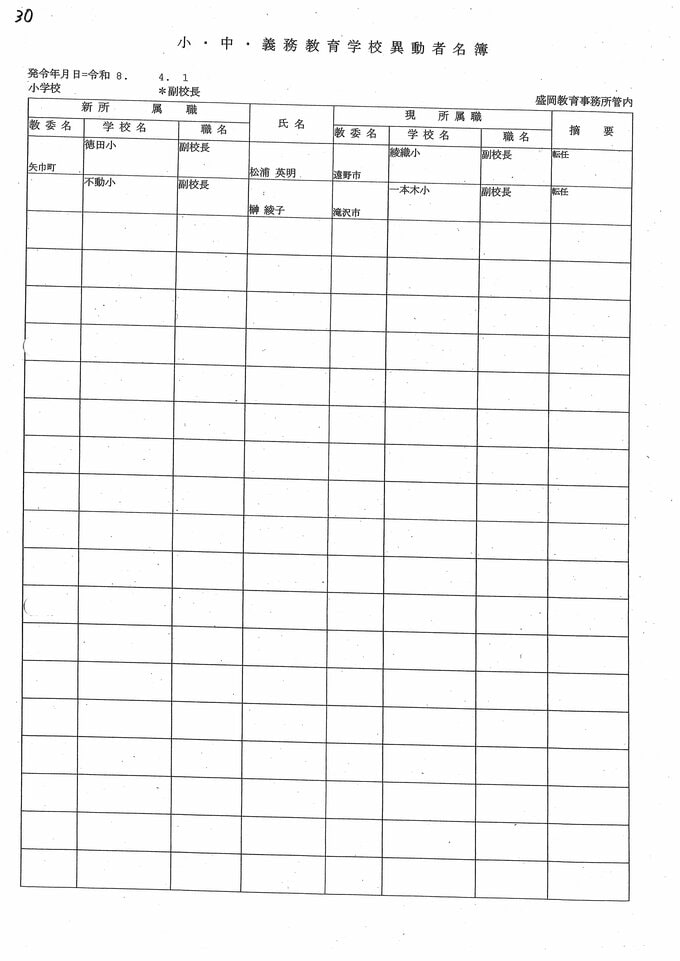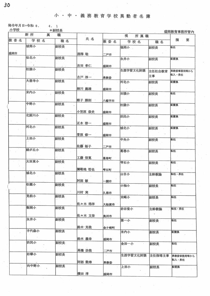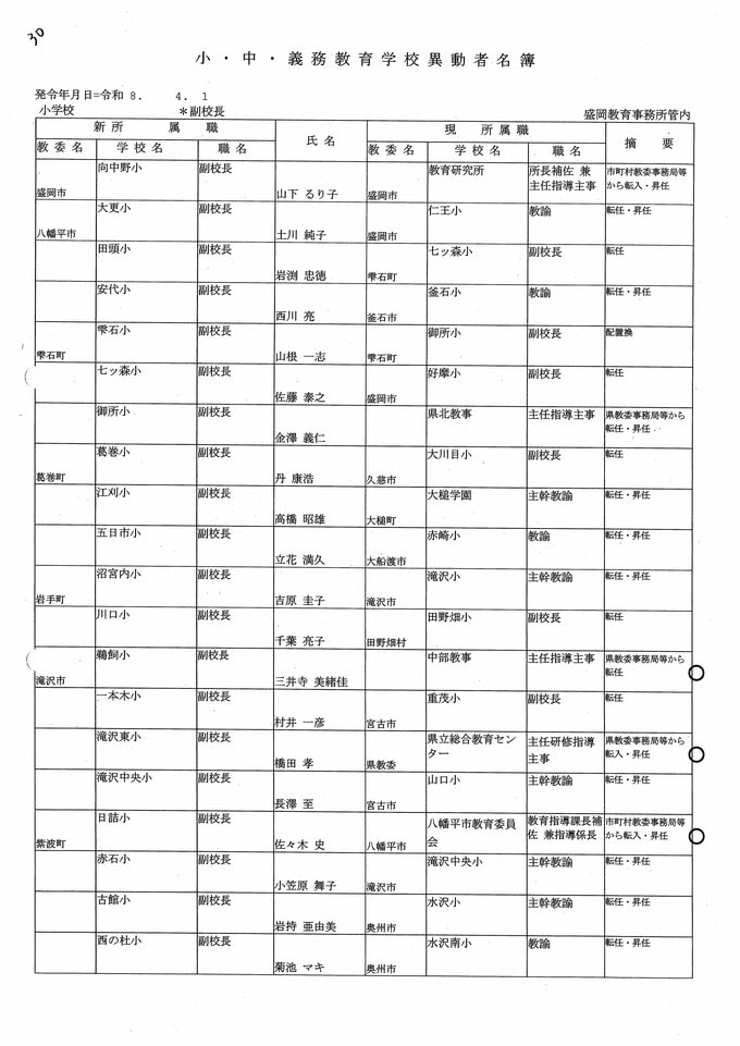 岩手県教職員人事異動2026年度 あの先生はどこへ行っちゃうの?(小学校、義務教育学校) IBC岩手放送 2026年3月20日(金) 06:00 国内 小学校、義務教育学校【副校長】 小学校【副校長 退職】