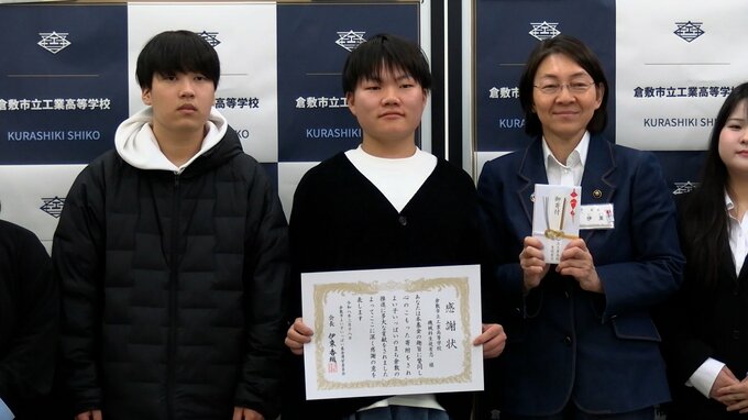 子どもたちの健全育成に役立てられる「倉敷市よい子いっぱい基金」に倉敷市立工業高校から寄付金が贈られました。倉敷市の伊東香織市長が高校を訪れ式典が行われました。寄付金となる3万円は機械科有志の生徒たち…