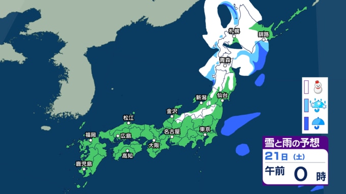【 今後の雨と雪 】3連休初日の20日(金祝)~21日(土)は北日本で大雪となる所も 22日(日)~23日(月)は西日本や東日本で雨に【雨雪のシミュレーション・19日正午更新】 新潟放送 2026年3月19日(木) 12:00 21日(土)の雨と雪のシミュレーション