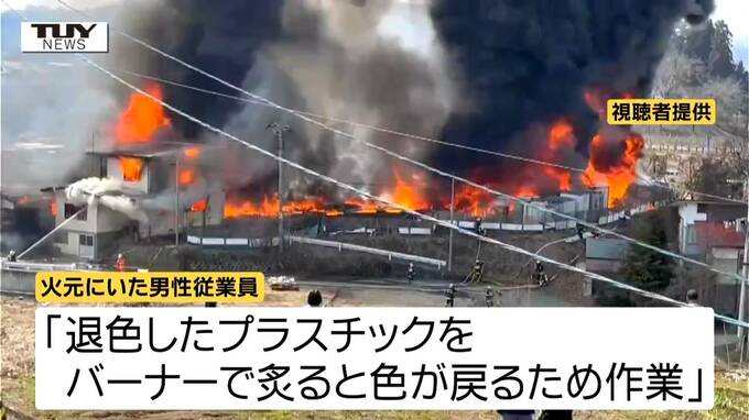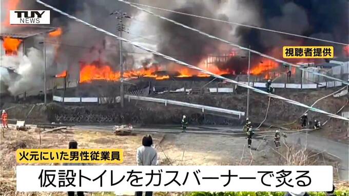 ガスバーナーでプラスチックの”色再生”作業をし炎が上がったと判明 仮設トイレ数百台と住宅3棟などが焼ける ネットで話題の裏ワザの危険とは(山形・大江町) テレビユー山形 2026年3月19日(木) 11:53 国内 火災現場(画像)