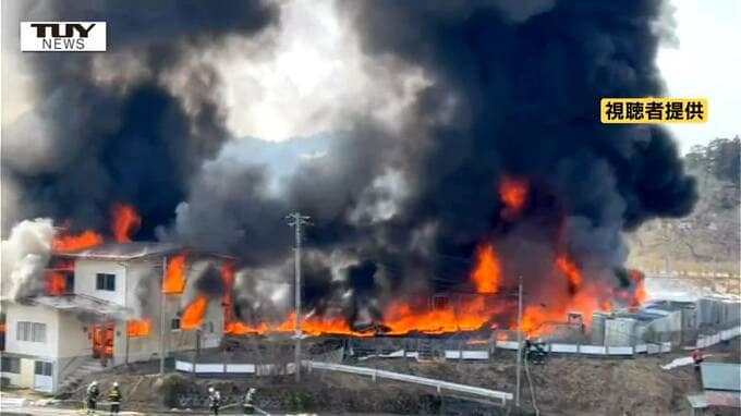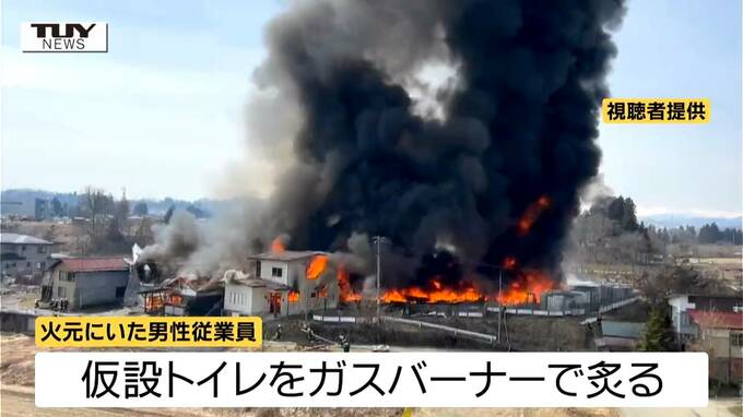 ガスバーナーでプラスチックの”色再生”作業をし炎が上がったと判明 仮設トイレ数百台と住宅3棟などが焼ける ネットで話題の裏ワザの危険とは(山形・大江町) テレビユー山形 2026年3月19日(木) 11:53 国内 異常なほどの黒煙(画像)