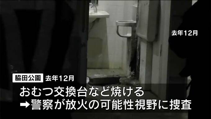 公園トイレ不審火や落書き相次ぐ 去年9月以降15件被害150万円 放火視野に捜査も 鹿児島 南日本放送 2026年3月19日(木) 12:01 国内 脇田公園ではおむつ交換台などが焼ける このうち、鹿児島市宇宿3丁目の脇田公園では今月10日夜、多目的トイレの中のおむつ交換台や壁の一部が焼けました。 この公園では、去年12月にもおむつの交換台などが焼け、警察が、放火の可能性も視野に捜査しています。