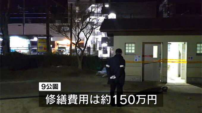 鹿児島市によりますと、9つの公園で不審火や落書きによる被害を受けた設備の修繕費用はおよそ150万円に上るということです。