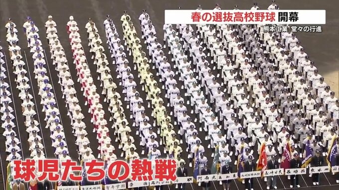 春の選抜高校野球が3月19日に開幕し、21世紀枠の2校を加えた全国32校が集まった開会式で、九州代表の熊本工業も堂々の行進をしました。