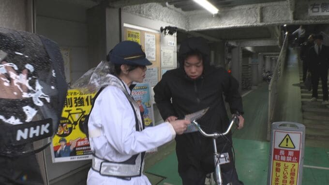 これを前に金沢駅の駐輪場では、警察官が自転車の利用者に街頭指導を行いました。