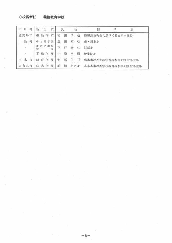 鹿児島県教職員 人事異動【小学校・中学校・義務教育学校】の【校長・教頭】新任、異動、退職「あの先生はどこへ」2026・令和8年名簿一覧 南日本放送 2026年3月19日(木) 17:10 国内 校長新任 義務教育学校