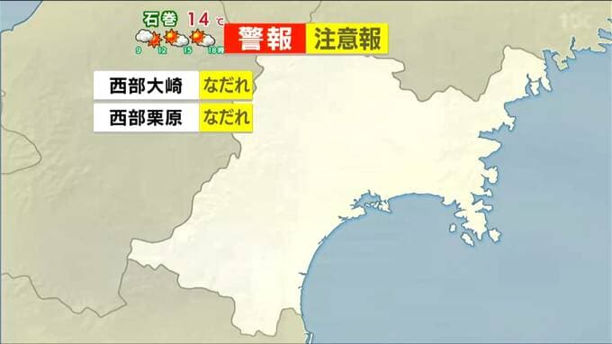 ■強風注意報:東部仙台、石巻地域、東部大崎、気仙沼地域、東部仙南、登米・東部栗原