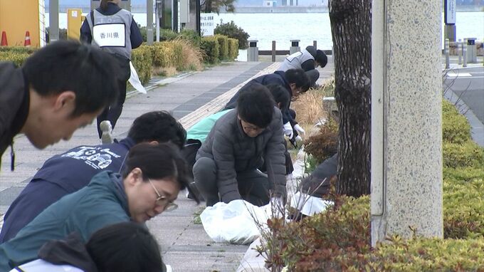 清掃活動はサンポート高松地区の価値を高めようと取り組む団体の活動の一環で実施されたもので、地元の企業などから約150人が参加しました。アリーナを起点に多くの人流を生み出す重要なエリアになっていることから、訪れる人に快適に過ごしてもらおうと参加者たちは歩道の雑草を抜くなどして、景観を守るため汗をかいていました。