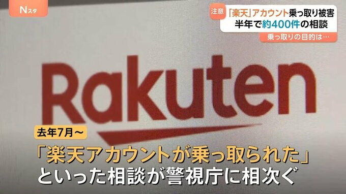 警視庁のサイバー犯罪対策課によりますと、去年7月から、「自身の楽天アカウントが乗っ取られて、他人のクレジットカードで商品を購入された」と相談が相次いでいるということです。