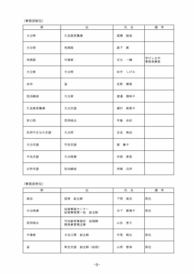 3. 大分県教職員人事異動 県立学校幹部職員2026【校長、統括事務長、副校長・教頭、事務長の名簿一覧掲載】
