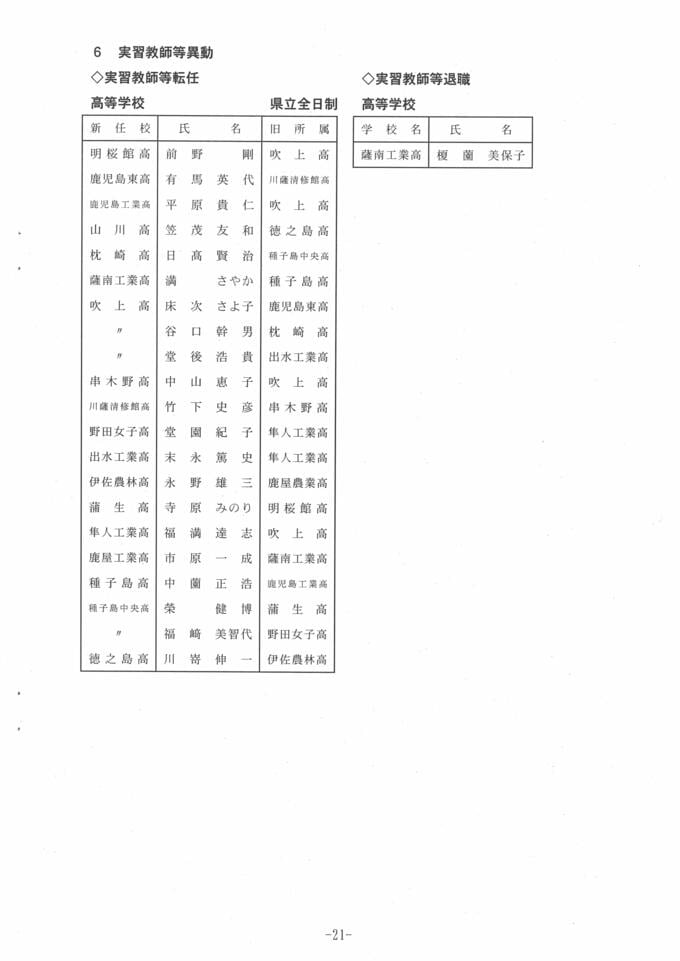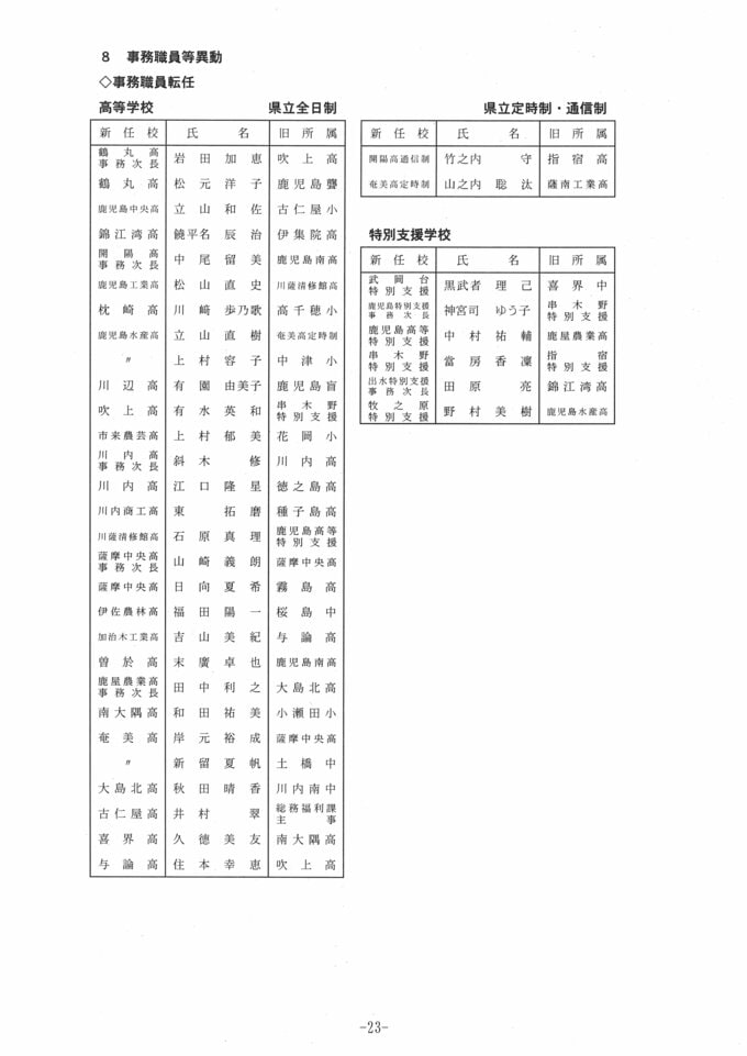 鹿児島県教職員 人事異動2026【高校、中高一貫教育校、夜間中学、特別支援学校】異動名簿一覧「あの先生はどこへ」令和8年 南日本放送 2026年3月19日(木) 17:11 国内 実習教師等、寄宿舎指導員、事務職員