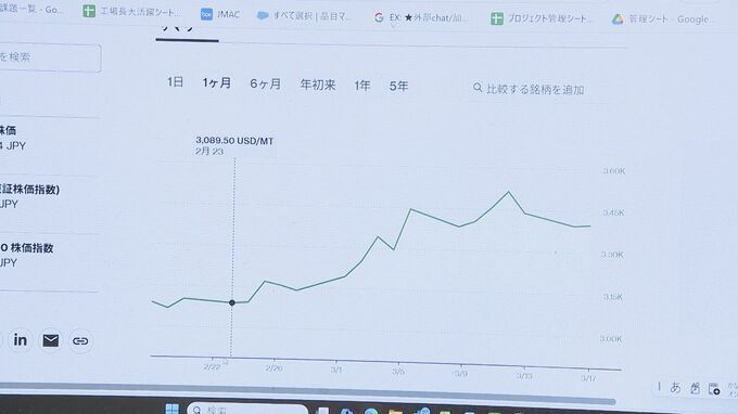 「イラン情勢前は、1トンあたりの価格は約3100USドルだったが、先週のピークで約3500USドルまで上昇した」