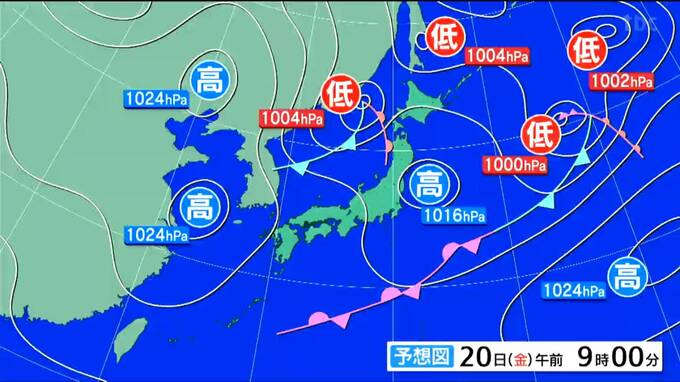 20日午前9時の予想天気図
