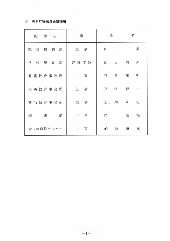鹿児島県教職員 【新規採用者一覧】令和8年2026