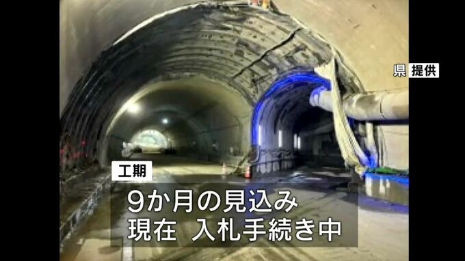 今後、トンネル本体の復旧工事に取り掛かりますが工期は9か月の見込みで現在、入札手続き中です。県は県議会の6月定例会で契約に関する議案を提案する方針です。