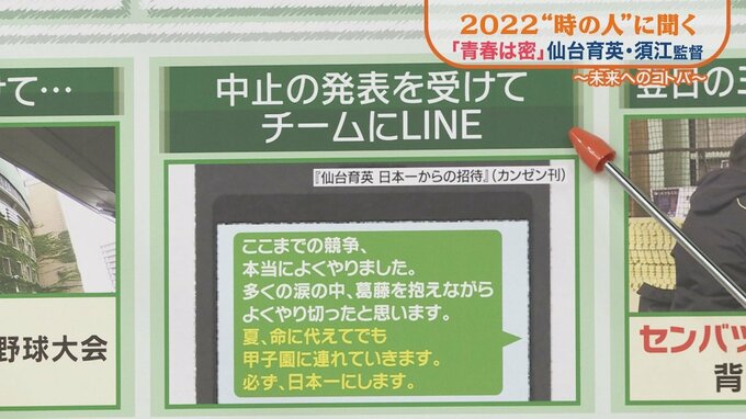 このとき出場を決めていた仙台育英のチームに、須江監督は次のようなLINEを送っています。