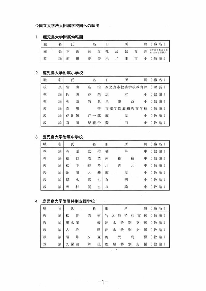鹿児島県教職員 人事異動【教職員の交流・派遣等】あの先生はどこへ2026・令和8年 南日本放送 2026年3月19日(木) 17:05 国内 鹿児島大学付属幼稚園、鹿児島大学付属小学校、鹿児島大学附属中学校、鹿児島大学附属特別支援学校、兵庫教育大学附属中学校への転出