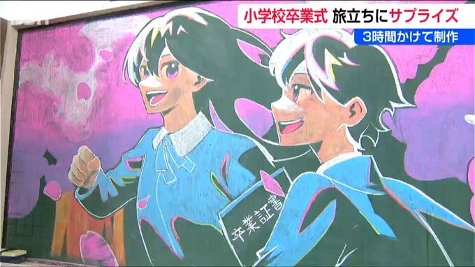 この黒板アートは、日本アニメ・マンガ専門学校の生徒と卒業生の合わせて9人が3時間かけて制作したもので、地域貢献と教育を合わせた取り組みとして、今年で10年目です。