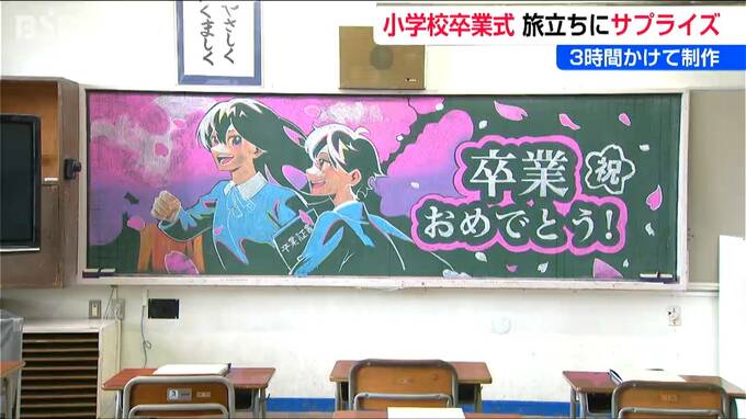 「6年生の教室に描かれているのは黒板アート。卒業生にはサプライズで披露されます」