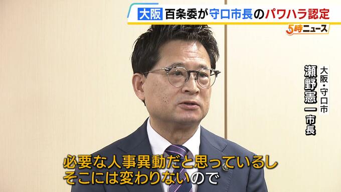百条委員会が市長のパワハラ行為を認定しました。 大阪府守口市によりますと、去年7月から8月にかけて職員から瀬野憲一市長からパワハラを受けたという申告が1件、田中実教育長からパワハラを受けたという申告…