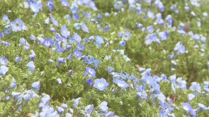 大分県杵築市の大分農業文化公園「るるパーク」で、鮮やかなパステルブルーのネモフィラが咲き始めています。「るるパーク」では、広さ5000平方メートルのフラワーガーデンに約70万本のネモフィラが植えられていま…
