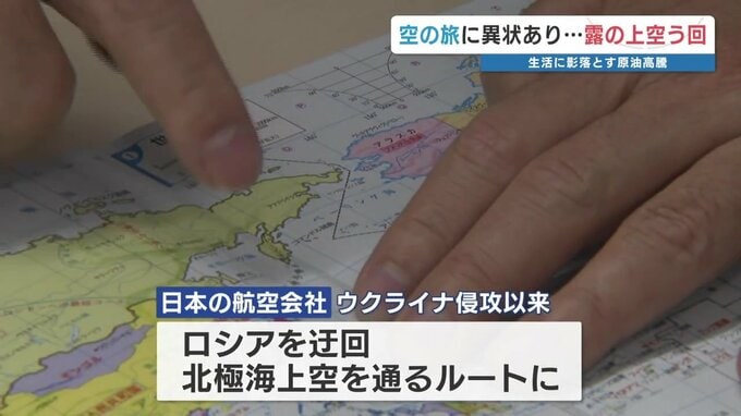 ロシアがウクライナに侵攻してから、日本の航空会社は、ロシア上空を迂回して北極海の上を通るルートを使うようになりました。