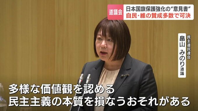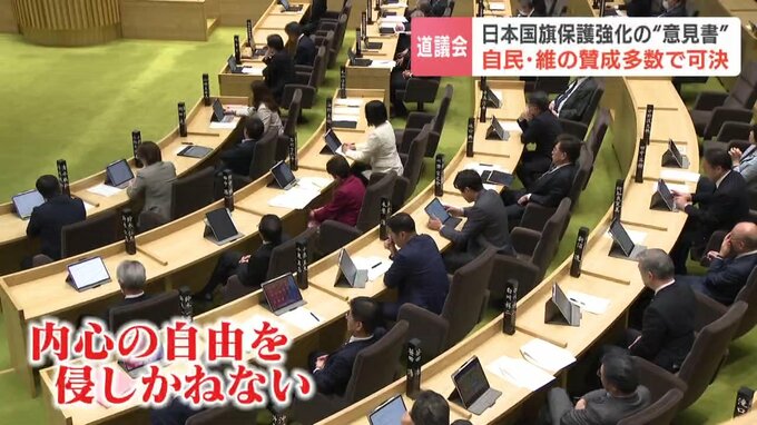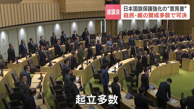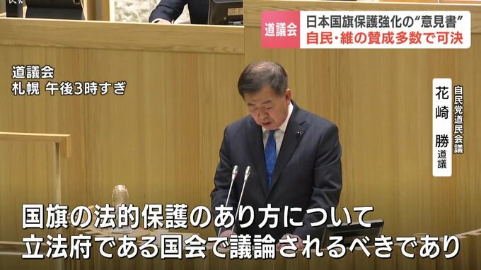 北海道議会は最終日の19日、日本の国旗の保護強化を求める意見書を、賛成多数で可決しました。