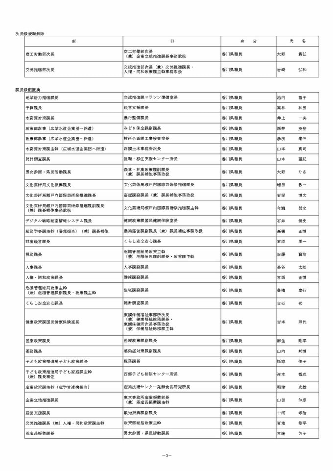 【2026年】香川県職員 第1次人事異動 部長・次長・課長級【画像一覧掲載】 RSK山陽放送 2026年3月19日(木) 20:41 国内 次長・課長級 【画像一覧掲載】香川県職員 第1次人事異動 部長・次長・課長級