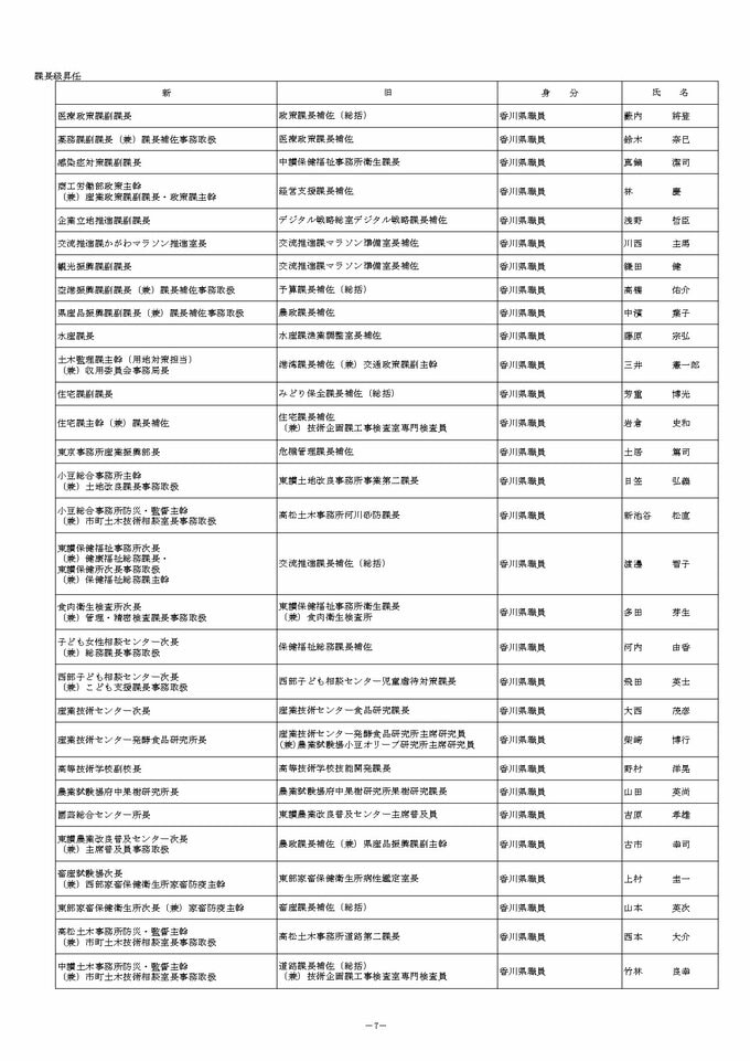 【2026年】香川県職員 第1次人事異動 部長・次長・課長級【画像一覧掲載】 RSK山陽放送 2026年3月19日(木) 20:41 国内 課長級(昇任) 【画像一覧掲載】香川県職員 第1次人事異動 部長・次長・課長級