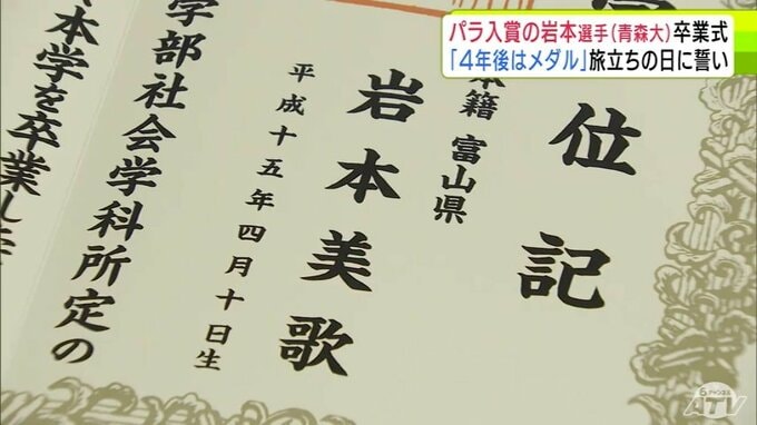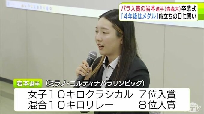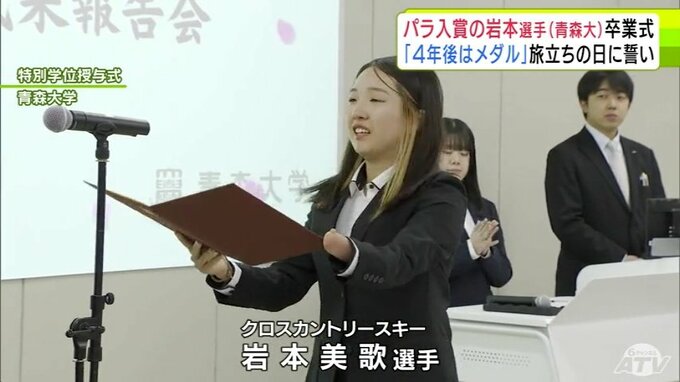 4年後は「メダルは確実に狙っていきたい」ミラノ・コルティナパラリンピックでクロスカントリー2種目で入賞の岩本美歌 選手(青森大学)が卒業式迎える 大学卒業後は北海道に拠点移し次の夢舞台を目指す 青森テレビ 2026年3月19日(木) 21:15 国内 【写真を見る】岩本美歌 選手の特別学位授与式の様子 ※「NEWS DIG」のアプリやサイト以外でご覧の方は、関連リンクから画像をご確認いただけます。