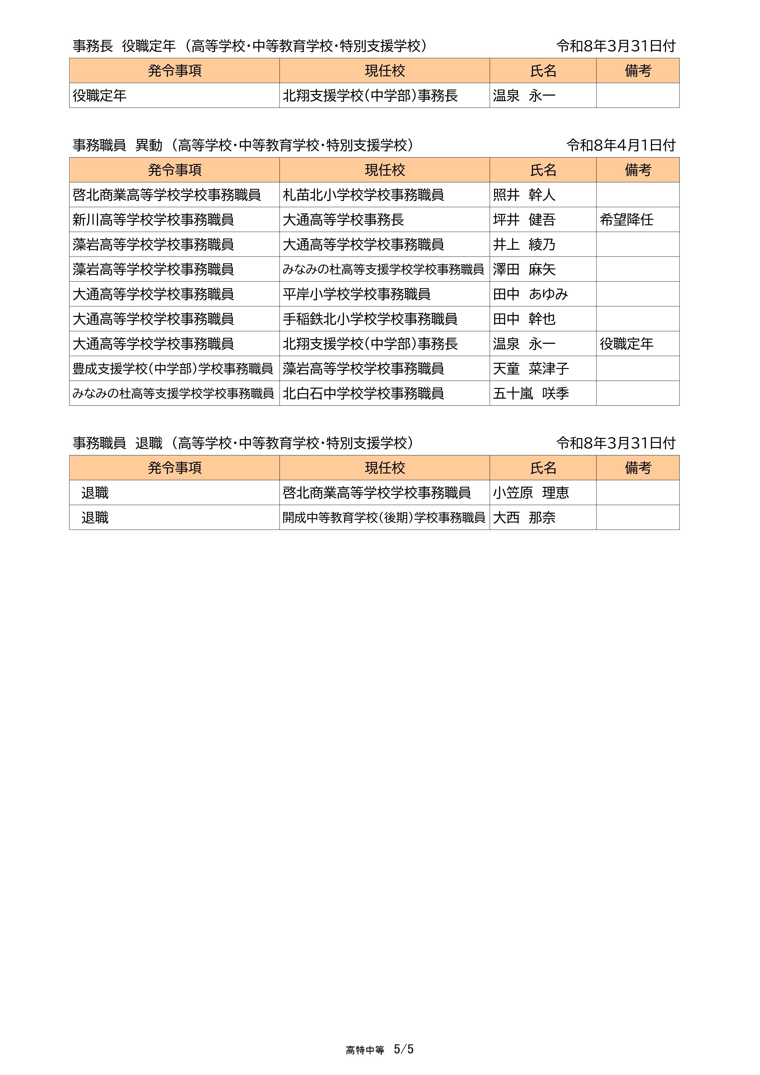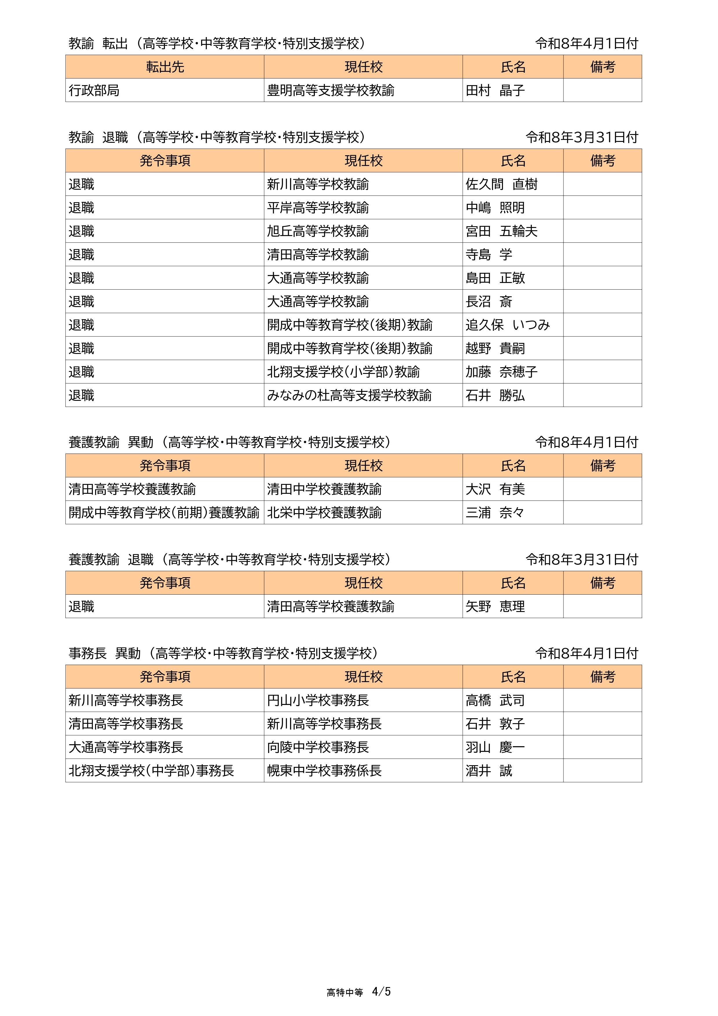 北海道教職員人事異動一覧2026「あの先生はどこに?」《札幌市立の高校・中等教育学校・特別支援学校》名簿全員掲載 23日発表分 北海道放送 2026年3月23日(月) 00:00 国内 《札幌市立の高校・中等教育学校・特別支援学校》名簿全員掲載②