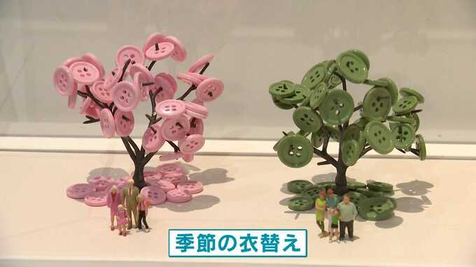 色違いのボタンを木にあしらって四季を表した「季節の衣替え」