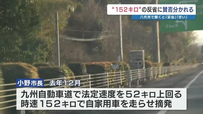 小野市長は去年12月、九州自動車道で、法定速度を52キロ上回る時速152キロで自家用車を走らせ、摘発されました。