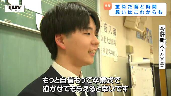 今野新大さん(3年)「ちょっと泣きそうになったところもあったんだけれど、自信持って演奏できる人が増えてきているからもっと自信もって卒業式泣かせてもらえると幸いです」