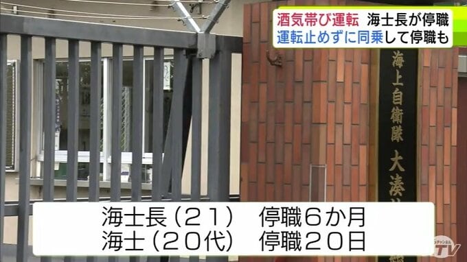 「少しの距離ならばれないと思った…」酒気帯び運転をしたとして21歳の海士長が停職6か月 運転を止めずに一緒に車に乗った同僚も停職20日に 20代の別の海士長は自分名義のキャッシュカードを他人に売り渡したとして停職20日… 海上自衛隊大湊地区総監部 青森テレビ 2026年3月19日(木) 21:42 国内 【写真を見る】 ※「NEWS DIG」のアプリやサイト以外でご覧の方は、関連リンクから画像をご確認いただけます。