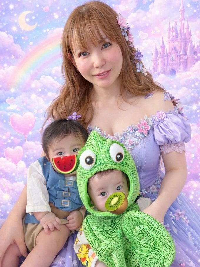 翔子さんは「注文してたパスカルの赤ちゃん服?とどいた!」「弟くんパスカル似合う!」「お兄ちゃんはフリン・ライダー!似合う!」と大はしゃぎ。1枚目の写真では、翔子さんはラプンツェルに、弟くんはラプンツェルの大親友・カメレオンのパスカルに、そしてお兄ちゃんは物語のヒーローとなるフリン・ライダーに、それぞれコスプレした姿を投稿しています。