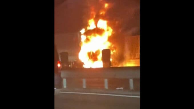 19日夜、福岡県筑紫野市の九州自動車道を走行していたトラックから火が出て一時、激しく炎上しました。けが人はいませんでした。19日午後7時ごろ、九州自動車道下りの太宰府インターから筑紫野インターの間で、「1…