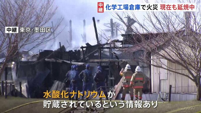 東京・墨田区の化学工場の倉庫で起きた大規模な火災は現在も延焼中です。東京消防庁によりますと、きょう午前10時ごろに化学工場の倉庫から出火し、消防車など57台が出動して消火活動にあたっています。これまでに…