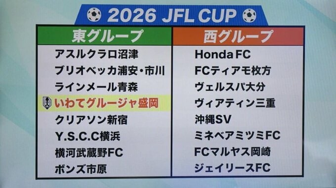 サッカーJFLのいわてグルージャ盛岡が22日、ホームのいわぎんスタジアムでJFLCUPの開幕戦を迎えます。