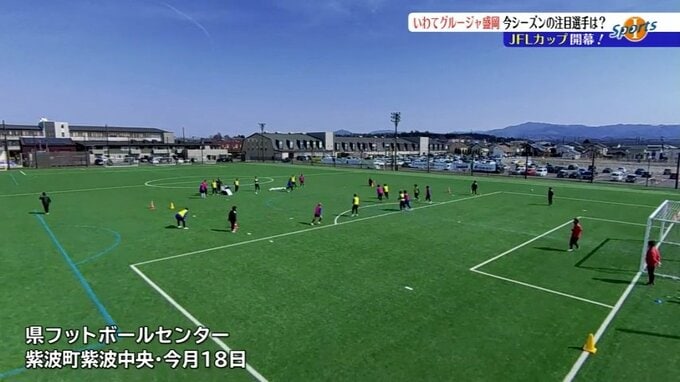 18日JFLCUP開幕に向けて練習に励む、いわてグルージャ盛岡の選手たち。