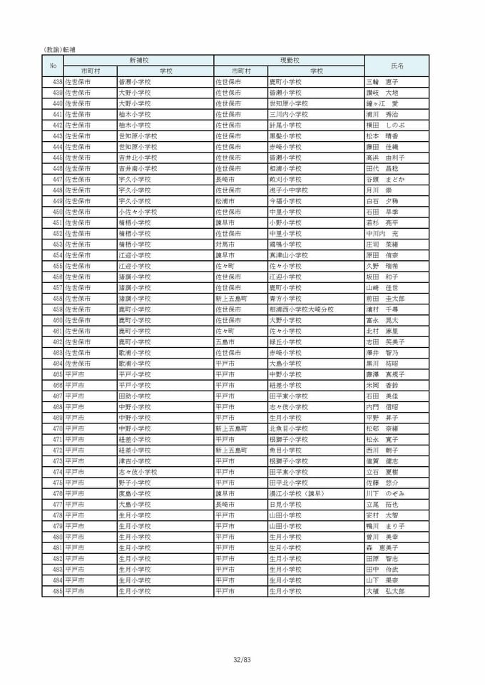 長崎県教職員人事2026 あの先生はどこへ?小学校(退職・異動・新採用)全掲載