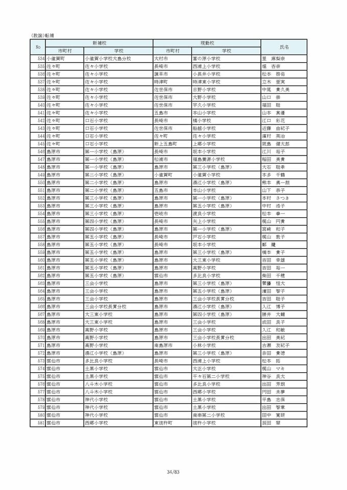 長崎県教職員人事2026 あの先生はどこへ?小学校(退職・異動・新採用)全掲載
