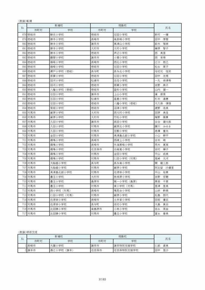 長崎県教職員人事2026 あの先生はどこへ?小学校(退職・異動・新採用)全掲載