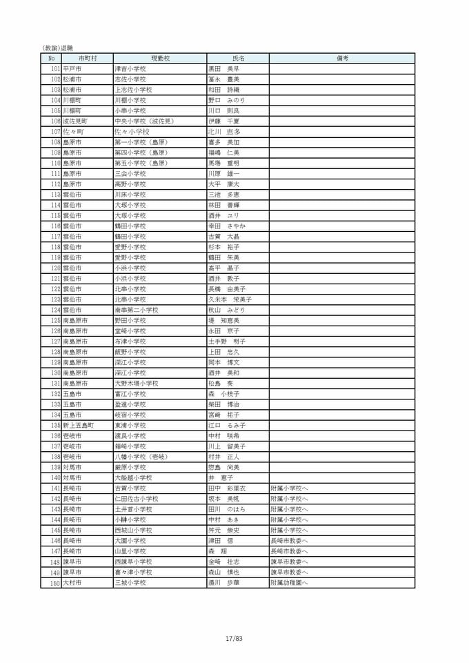 長崎県教職員人事2026 あの先生はどこへ?小学校(退職・異動・新採用)全掲載