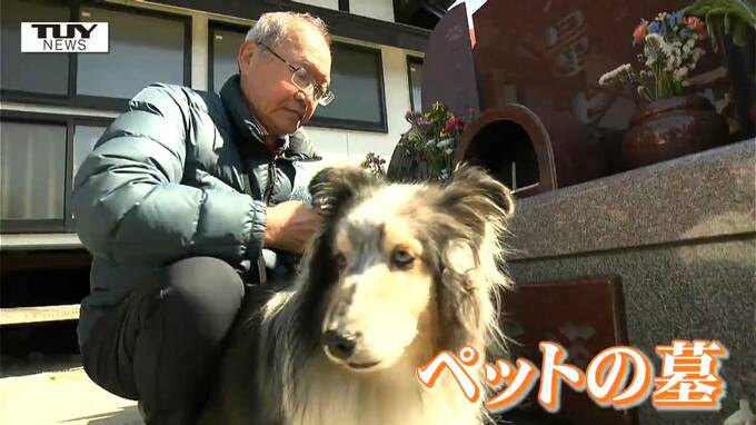 また近年は、家族の一員として過ごしたペットの墓もあり、先代の犬の墓前に優しく寄り添う二代目の犬の姿も。