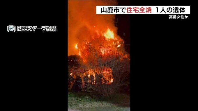 19日夜、山鹿市で住宅が全焼し、焼け跡から、性別の分からない1人の遺体が見つかりました。
