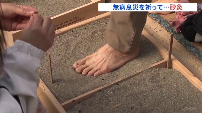 訪れた人「砂の感触が新鮮で面白い体験でした」砂に付けた足跡にお灸をすると、万病に効くと言い伝えられる「砂灸」。300年ほど前、農家に泊めてもらった旅の修行僧がおもてなしのお礼にと「弘法大師の秘法」とし…