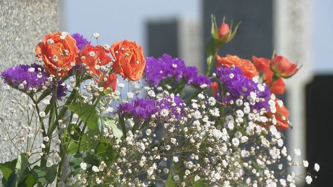 金沢市内の墓地では穏やかな青空のもと、多くの人が墓参りに訪れていました。