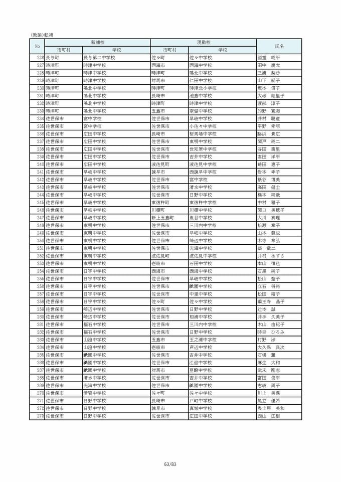 長崎県教職員人事2026 あの先生はどこへ?中学校・義務教育学校(異動・退職・新採用) 全掲載